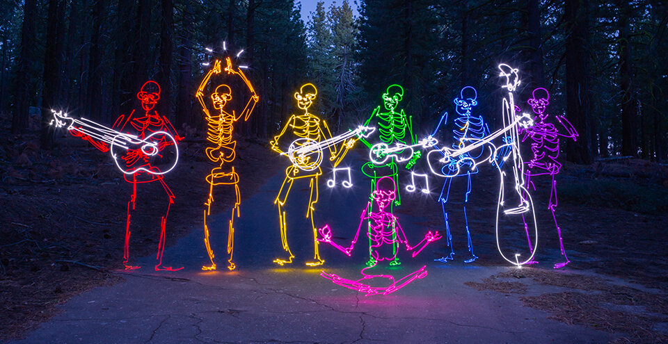 En el corto podemos observar cómo un esqueleto con sombrero de vaquero viaja por California de noche a través de portales mágicos, recolectando gemas bajo las estrellas, y acompañado por la música y sonido de Scott Doherty.